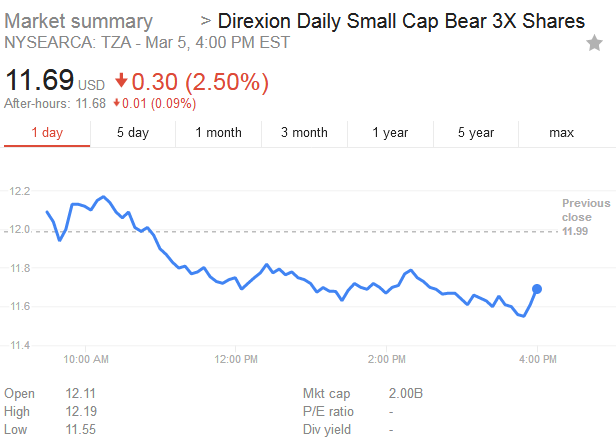私はコールとプットの両建てポジションにエントリーしており、当初はコールメインのポジションだったのでTZAが上がることに賭けていた=小型株が暴落することに賭けていたのですが、エントリー翌日の市場の活況っぷりであっさりコールは壊滅、その代わり保険で買っていたプットが輝きを放ち始めてくれており、最早TZAの下落=小型株が元気に上がってくれることを願う立場になっていたのでした。