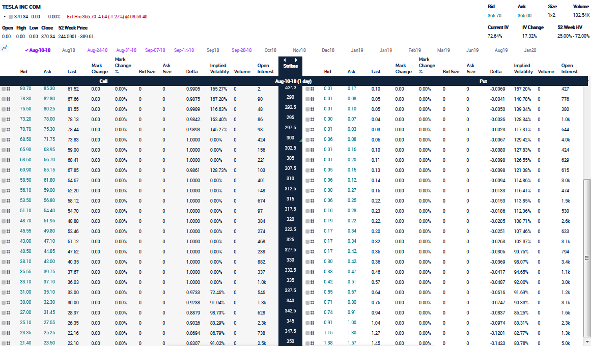 | 8月8日午前10時のTSLAオプション板 |